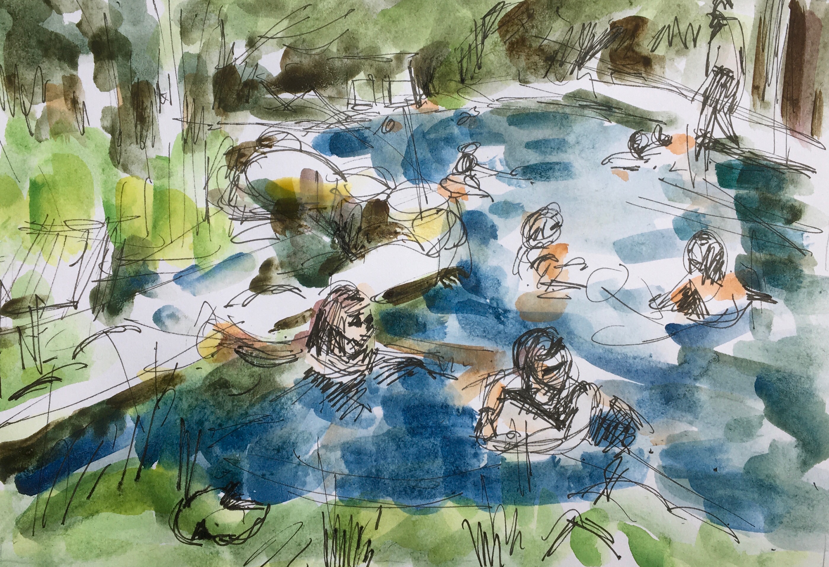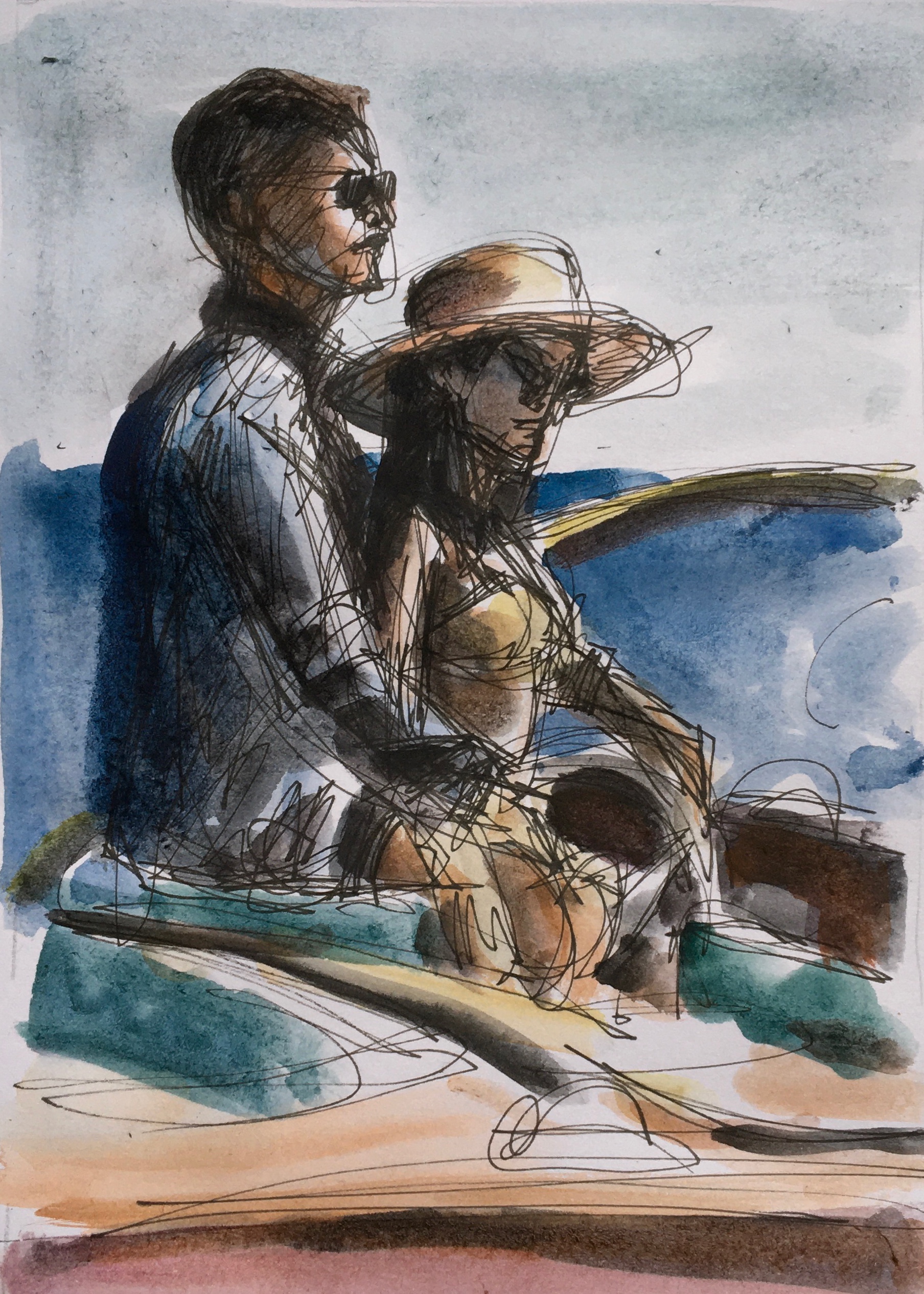 My name is Barbara Poelvoorde. I'm a Belgian artist. I studied painting on and off in schools throughout my youth, never quite grasping what it was about. But also, never quite wanting to pack up my dream of becoming an artist. With the dawn of the internet, I found new ways to pursue that dream, I could finally plunge into this subject to my heart's content. Finding all sorts of resources through recommendations from online teachers and painters all over the globe, as well as from artists of times past. I read all the letters Van Gogh wrote to his brother, to understand how his tenacity and serious nature made him the painter he was, as well as studying his resources, such as Charles Bargue's Drawing Course. A course that was later on used by Picasso, and was considered the drawing bible for late 19th century and early 20th century aspiring artists. I was inspired by and fascinated by the Bay Area artists, such as Richard Diebenkorn, David Park. And I loved their themes and colours. They spoke of leisure and pleasure, the California sky, the Pacific Ocean. Themes I enjoy very much. I love studying the human figure, in all its relaxed and satisfying states, as well as the interaction between two figures especially, such as romance, or people playing together, etc.